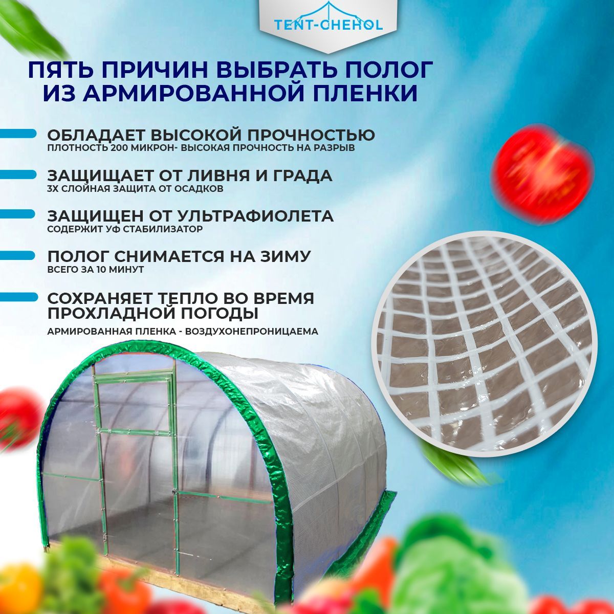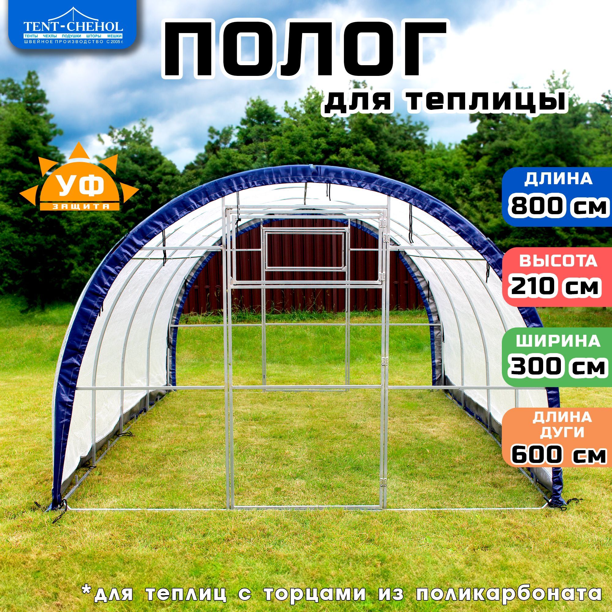 Купить Полог для теплицы из армированной пленки 8х3х2,1м цена 6500 руб. в Москве и СПб с доставкой по России