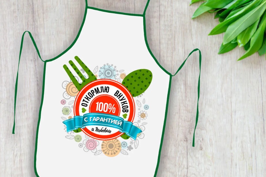 Во время термотрансферной печати изображение переносится при помощи горячего способа: под прессом. Нужно всего несколько секунд на то, чтобы рисунок чётко скопировался со специальной плёнки на фартук, а затем надёжно с ним сцепился. Вы можете быть уверены в том, что фартук с вашим изображением прослужит долгое время.