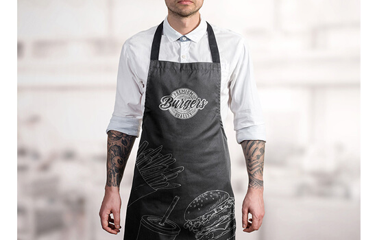 Чаще всего к нам обращаются именно руководители заведений общепита, так как фартуки там используют повара, бармены, официанты. Фартуки могут быть выполнены в абсолютно любой модификации: они могут быть на поясе, с лямками, с фасадом. На фартуке можно разместить не только название вашего заведения, но и фотографии фирменного блюда, таким образом у гостей поднимется аппетит.
