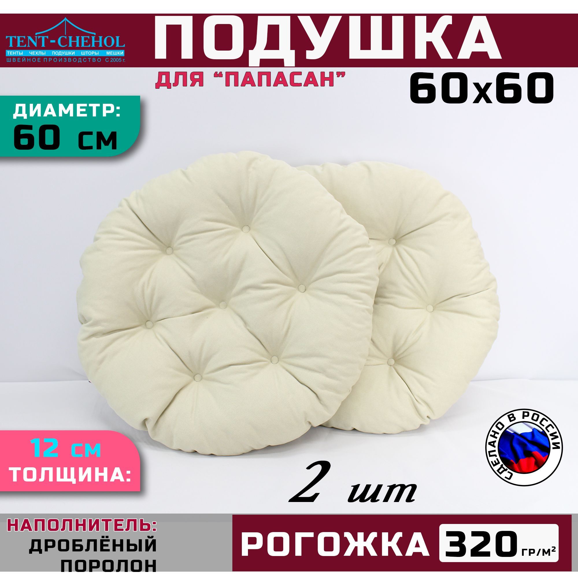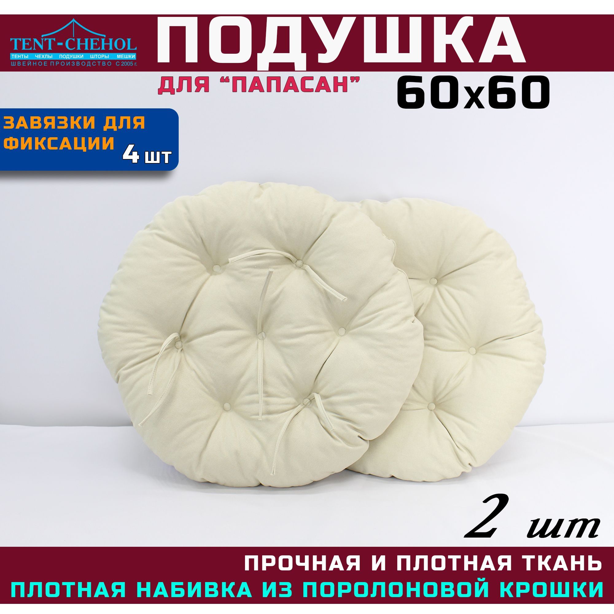 Краткое описание «Подушка для кресла и качелей 60 см, светло-бежевая (рогожка) 2 штуки»