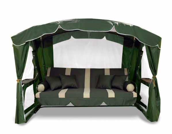 У нас вы можете купить комплект для садовых качелей Сингапур. Весь комплект выполнен в зелёном цвете, в него входит тент, а также москитная сетка. Все тканевые элементы данного комплекта изготовлены из материала оксфорд 210, который не пропускает воду, не портится от солнечных лучей, не выгорает. Если вы хотите спокойно отдыхать на своих садовых качелях, при этом не беспокоясь за то, что погода нарушит ваш отдых, такой комплект именно для вас.