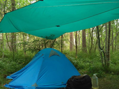 Тент туристический 3x5 м - идеальная защита от дождя и солнца, пригодится как на даче, так и в любых походах. Сделан из качественного материала - 100% полиэстера, который не пропускает влагу. Углы тента усилены вставками из прочной ткани. С тентом идет полный комплект оттяжек. Отличная защита от дождя 4000 мм.в.ст.