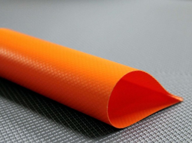 Краткое описание «Тентовая ткань ПВХ 650 гр./м2 оранжевая односторонний лак»